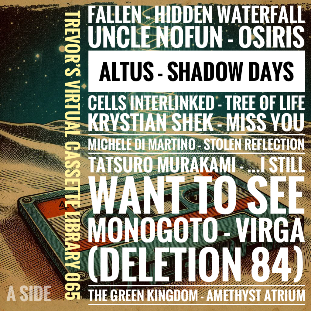 🌌 Welcome. I’m Trevor, your host on this sonic voyage, broadcasting from All Tunes On Studios in Sollentuna, Sweden. You’ve arrived at the Virtual Cassette Library—a series of 90-minute expeditions with two sides, punctuated by a transition at the midpoint. Perfect for wandering, reflecting, and knowing just when to turn homeward.