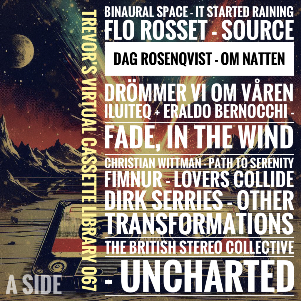 🌌 Welcome. I’m Trevor, your host on this sonic voyage, broadcasting from All Tunes On Studios in Sollentuna, Sweden. You’ve arrived at the Virtual Cassette Library—a series of 90-minute expeditions with two sides, punctuated by a transition at the midpoint. Perfect for wandering, reflecting, and knowing just when to turn homeward.