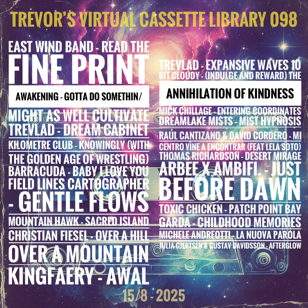This entry was posted on August 15, 2025 by trevlad. It was filed under Mix shows, Music, Music podcast and was tagged with ambient, ambient drone, ambifi., Anthology Recordings, Arbee, Argentina, astronomy, atmospheric, Aural Films, Awakening, Barracuda, berlin school, Bit Cloudy, brazilian, Brooklyn, Buenos Aires, Cádiz, chill-out, Christian Fiesel, contemporary, Cyclical Dreams, dark ambient, David Cordero, DiN, Dreamlake Mists, drone, drone ambient, Dublin, East Wind Band, electro acoustic, electronic, electronic music, electronica, em, experiemental, Field Lines Cartographer, field recording, field recordings, France, Fynaven Records, Garda, Gustav Davidsson, hauntology, idm, Imaginary North, Indonesia, Ingrown Records, instrumental, Ireland, Italy, Japan, jazz-funk, Julia Gjertsen, Kilometre Club, kingfaery, Lᴏɴᴛᴀɴᴏ Series, lo-fi, London, lowercase, meditation, meditation music, meditative, Michele Andreotti, Mick Chillage, minimalism, minimalist, modern classical, modern soul, modular synth, Mountain Hawk, MR BONGO, Muzan Editions, nature, neo-classical, Neotantra, new age, new age music, New York, Noray Records, North Carolina, Ontario, Osaka, Québec, Raúl Cantizano, rohs! records, Sardinia, Sollentuna, soundscape, soundscapes, space ambient, space music, Spain, Spokane, Sunderland, Sweden, synth, techno, The Golden Age of Wrestling, Thomas Richardson, Toronto, Toxic Chicken, trevlad, turkish, UK, vaporwave, Washington, Whitelabrecs, world fusion.