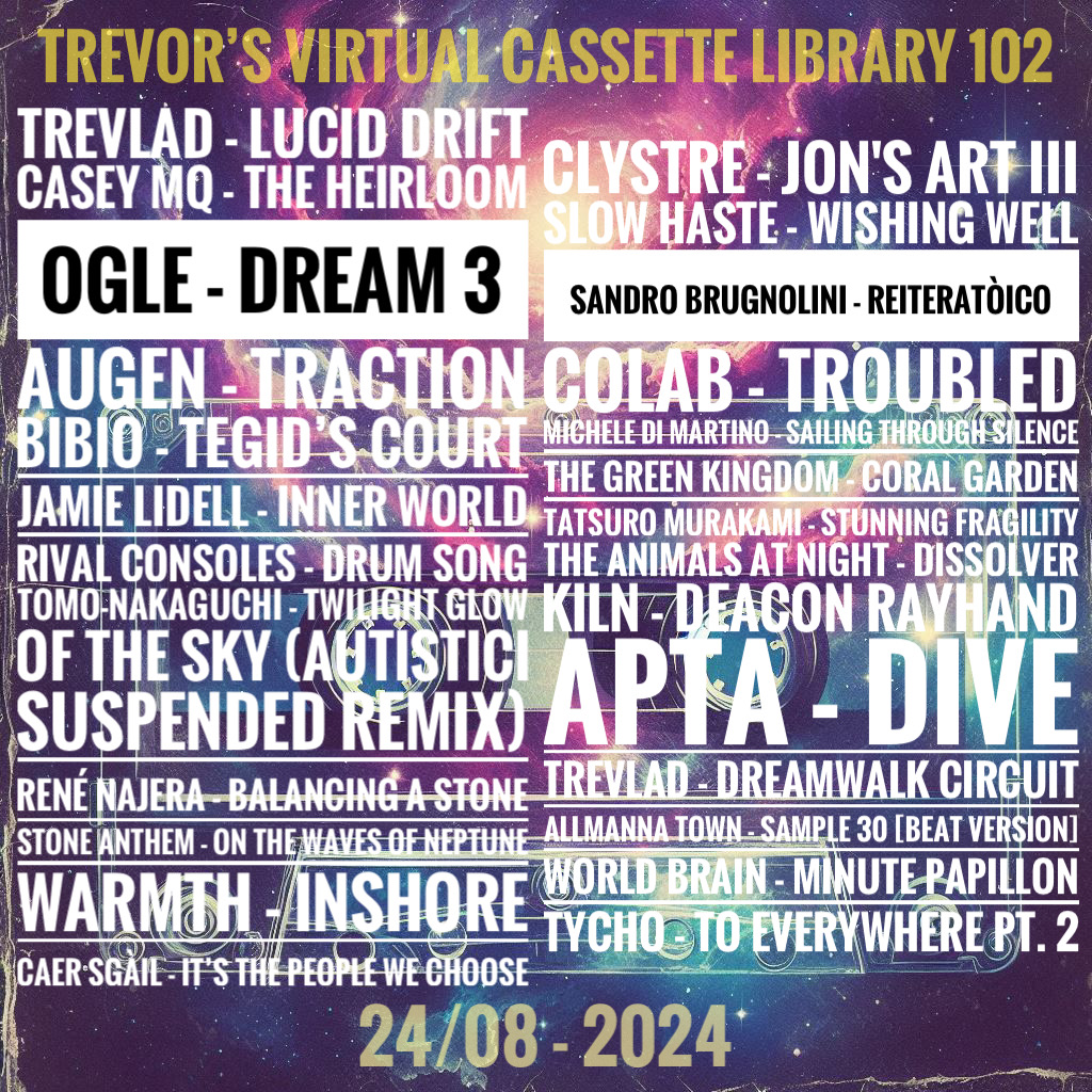 Welcome to Trevor’s Virtual Cassette Library episode 102 A 90-minute journey with a metaphysical flip at the halfway mark—perfect for a long walk, a mental wander, or a quiet moment alone with the universe. Today’s flight is partially sponsored by these generous labels: Astra Solaria Recordings, Castles In Space, ARCHIVES, Error Prone Records, Moniker Eggplant, Sonor Music Editions, Bricolage, rohs! records, Mystery Circles,