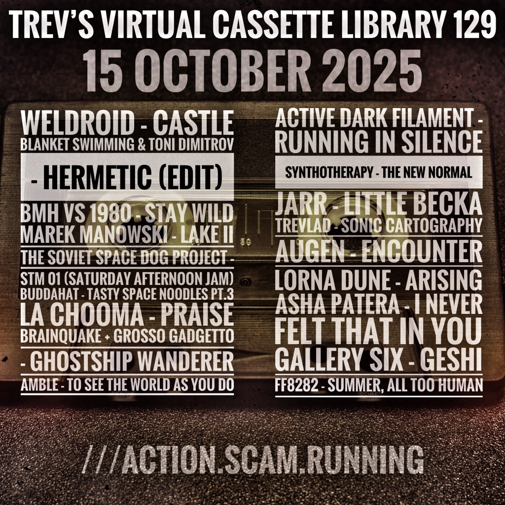 This entry was posted on October 15, 2025 by trevlad. It was filed under Mix shows, Music, Music podcast and was tagged with 1980, Active Dark Filament, Adventurous Music, ambient, ambient electronic, ambient piano, amble, amble ambling, amble music, Argentina, Asha Patera, atmospheric, Augen, Australia, avant-garde, Barroca, Batov Records, Belgium, berlin school, Birmingham, Blanket Swimming, BMH, Brainquake, Brighton And Hove, Brisbane, British Columbia, Buddahat, Buenos Aires, Bulgaria, chill-out, Cyclical Dreams, dark ambient, darkambientmusic, downtempo, DRONARIVM, drone, dronemusic, electro acoustic, electroacoustic, electronic, electronica, England, experimental, experimental ambient, experimental electronic, ff8282, field recordings, Finland, Fonodroom, France, Gallery Six, Germany, glitch, global funk, Grosso Gadgetto, guitars, hauntology, headphone music, Hiroshima, Home Normal, idm, industrial, instrumental, Japan, JARR, Kahvi Collective, Kansas City, kosmische, La Chooma, Las Vegas, Le Mont Analogue, Leipzig, Lisbon, London, Lorna Dune, Mahorka, Marek Manowski, meditation, Milwaukee, minimal, Missouri, modern classical, modular, modular synth, Moolakii Club Audio Interface, Mystery Circles, nature, Netherlands, Nevada, new age, nobeat, norfolk modular, organic, Passed Recordings, peaceful piano, piano, Poland, Portugal, post-rock, psych, psychedelic, Rabbithole Club, Sollentuna, soundscape, soundscapes, soundtrack, space music, Stockholm, Sweden, synth, synth music, Synthotherapy, techno, The Soviet Space Dog Project, Toni Dimitrov, trevlad, Triplicate Records, UK, Uppsala, Vancouver, Warminster, WEATNU RECORDS, Weldroid, Whitelabrecs, Wirral, Wisconsin, Womblabel, world.