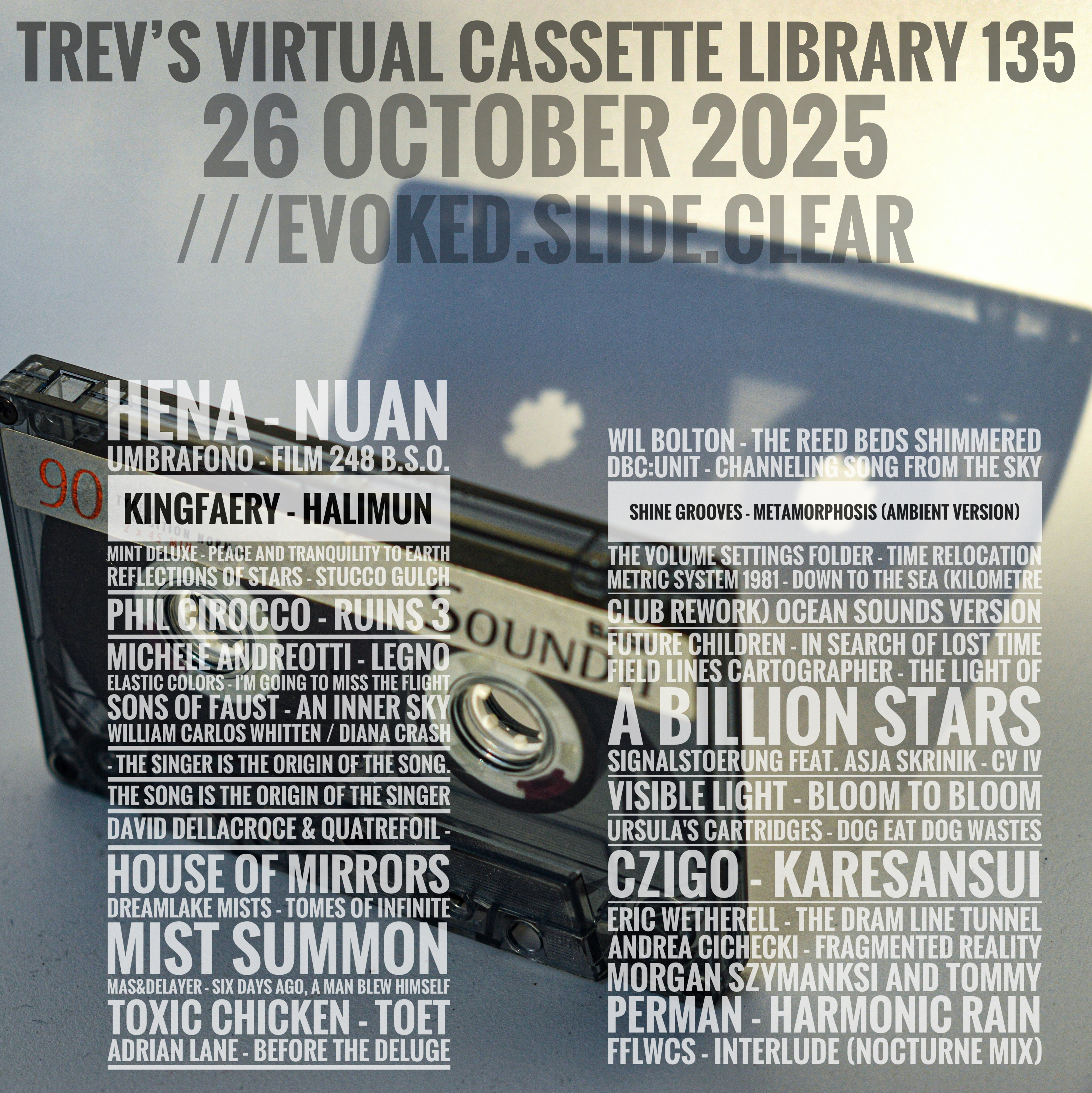 This entry was posted on October 26, 2025 by trevlad. It was filed under Mix shows, Music, Music podcast, Uncategorized and was tagged with 1970s, 80s, acoustic-electronic, Adrian Lane, Adventurous Music, Alan R. Pearlman Foundation, Aldarrax, Alençon, ambient, ambient electronic, ambient lofi, Andrea Cichecki, Argentina, Artificial Owl Recordings, Asja Skrinik, Astra Solaria Recordings, avant garde, bass, bass music, Berlin, berlin school, bird song, Blackford Hill, Boston, Brighton And Hove, buchla, Buenos Aires, Bulgaria, Buried Treasure, California, Cardiff, chamber music, chill-out, chillout, cinematic, cinematic soundscape, contemporary, Cousin Silas, Croatia, cyberpunk, Cyclical Dreams, CZiGO, dance, David Dellacroce, DBC:Unit, deep listening, Diana Crash, DiN, Dreamlake Mists, Dresden, drone, dub, dubstep, dungeon synth, Edinburgh, Elastic colors, electroacoustic, electronic, electronic music, electronica, electronica experimental, ems synthi, England, Eric Wetherell, experimental, experimental electronic, fantasy ambient, fantasy synth, Fflwcs, Field Lines Cartographer, field recordings, film music, folk, Fort Worth, France, free jazz, free jazz improvisation, Future Children, Fynaven Records, Genoa, Germany, Glasgow, Granada, Hena, Home Normal, house, I Heart Noise, I Low You Records, idm, Imaginary North, indie, Indonesia, industrial, Ingrown Records, instrumental, Invisible Inc., Italy, Japan, jazz and improvised music, Kent, Kilometre Club, kingfaery, Lancaster, Lᴏɴᴛᴀɴᴏ Series, Leipzig, lo-fi, Los Angeles, Machine Records, Mahorka, Manchester, Mas&Delayer, Massachusetts, meditation, Metric System 1981, Mexico, Michele Andreotti, minimalism, Minneapolis, Minnesota, Mint Deluxe, mist synth, modern classical, modular synth, Moniker Eggplant, Morgan Szymanksi, nature, Netherlands, new age, New York, New Zealand, newagemusic, noise, noise rock, nord wave, North Carolina, Ohio, Ontario, Oregon, organic, Padua, Pennsylvania, Phil Cirocco, Philadelphia, pop, Portland, post rock, Projekt Records, psychedelic, Quatrefoil, Reflections Of Stars, Region of Murcia, rhythmic noise, rituals, rohs! records, Rouen, Russia, Sardinia, science fiction, serge modular, Shine Grooves, Signalstoerung, social media, Sons Of Faust, Sounds for the Soul Records, soundscape, soundscape composition, soundtrack, soundtracks, space ambient, space music, Spain, spoken word, Sunderland, synth, synthesizer, synthpop, synthwave, syntrx, techno, Texas, The Volume Settings Folder, Tokyo, Tommy Perman, Toronto, Toxic Chicken, UK, UMBRAFONO, Ursula's Cartridges, Valle De Bravo, vaporwave, Visible Light, Wellington, Whitelabrecs, Wil Bolton, William Carlos Whitten, world music, Yekaterinburg.