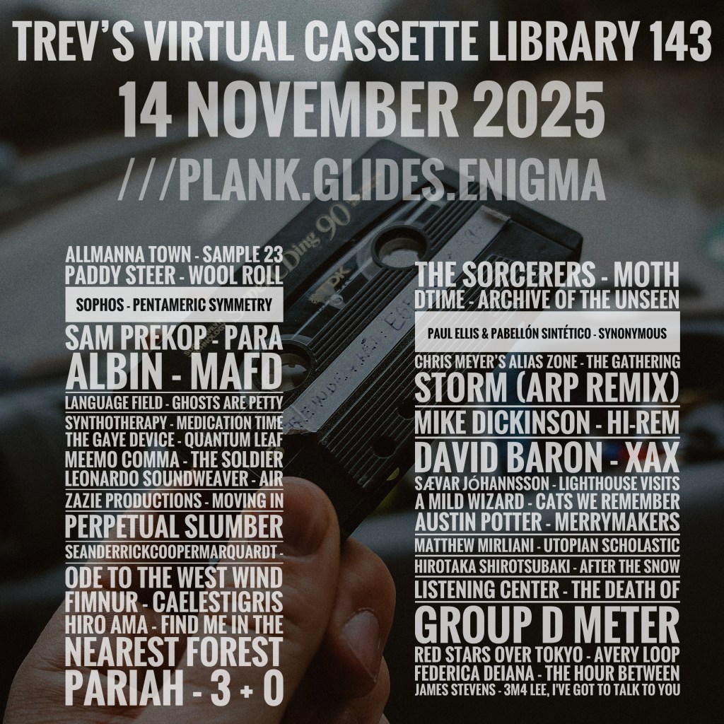 This entry was posted on November 14, 2025 by trevlad. It was filed under Mix shows, Music, Music podcast and was tagged with 1960’s, a mild wizard, Albin, Allmanna Town, alternative, ambient, ambient electronic, ambient house, ambient piano, Argentina, Asheville, ATA Records, atmospheric, Austin Potter, avant-garde, beats, Belgium, Berlin, berlin school, braindance, Brighton And Hove, brit-jazz, Buenos Aires, Bulgaria, Buried Treasure, Castles In Space, Chicago, chill-out, Chris Meyer’s Alias Zone, cinematic, classical, Cyclical Dreams, 神戸市, dark ambient, David Baron, De Wijk, disco, diy, downtempo, drone, DTime, dungeon synth, electro, electronic, electronic music, electronica, ethio-jazz, ethiojazz, ethiopian jazz, ethiopiques, experimental, experimental electronic, experimental electronica, Federica Deiana, field recordings, film score, Fimnur, folk, folktronica, footwork, funk, Geneva, Germany, glitch, Groningen, guitar, hip hop, Hiro Ama, Hirotaka Shirotsubaki, Home Normal, house, Hove, Hull, Iceland, idm, Illinois, indie, Ingrown Records, Inner Islands, instrumental, Italy, italy neoclassical, James Stevens, Japan, jazz, Jersey City, kosmische, kraut, krautrock, Lancashire, Language Field, lap steel guitar, Lᴏɴᴛᴀɴᴏ Series, Leeds, leftfield, Leonardo Soundweaver, Listening Center, London, Mahorka, Malmö, Manchester, Matthew Mirliani, Meemo Comma, melodic techno, Mike Dickinson, mindful piano, minimal, modular synth, modular synthesizer, Moolakii Club Audio Interface, nature, neoclassical, Netherlands, new age, New Jersey, New Mexico, New York, North Carolina, nudisco, omnichord, Oregon, organic, Pabellón Sintético, Paddy Steer, Paltunes, Pariah, Paul Ellis, piano, Planet Mu, playful, Poland, pop, pop rock, Portland, postclassical, PRAH Recordings, Projekt Records, psych, psychedelic, Red Stars Over Tokyo, relaxing, retrosynth, Reykjavík, rohs! records, Sam Prekop, Sardinia, sardinia ambient, Sævar Jóhannsson, sci-fi, seanderrickcoopermarquardt, Seattle, Sophos, Sounds for the Soul Records, soundscape, soundtrack, soundtracks, South Carolina, space, space music, space rock, study music, sunday morning, Sweden, Switzerland, synth, synthesizers, Synthotherapy, techno, The Gaye Device, The Sorcerers, Thrill Jockey Records, UK, vaporwave, Vermont, Washington, western ambient, winter synth, Woodstock, world, Wormhole World, WRWTFWW Records, Zazie Productions.