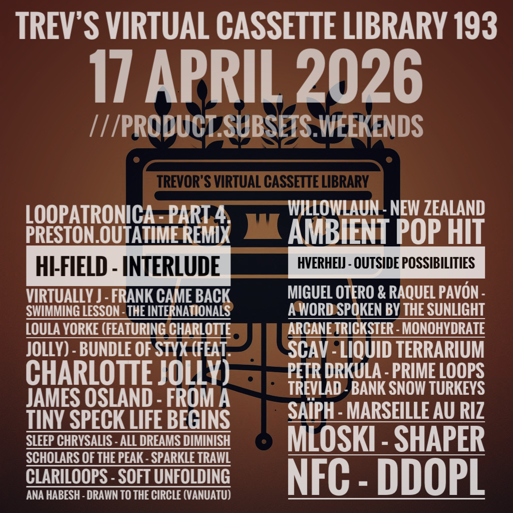 We cross into field recordings and memory: Ana Habesh calling from Vanuatu, Then we flip the virtual cassette and find willowlaun dropping the ultimate New Zealand ambient pop moment, and Hverheij stepping into the realm of outside possibilities.