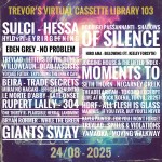 Welcome to Trevor’s Virtual Cassette Library episode 103 A 90-minute musical journey where the musical pieces are woven together into two, uninterrupted, 45 minute adventures. The styles for this episode include ambient, electronica, idm, and soundscapes. There is a metaphysical flip at the halfway mark. The shows are designed for a long walk, a mental wander, or a quiet moment alone with the universe.
