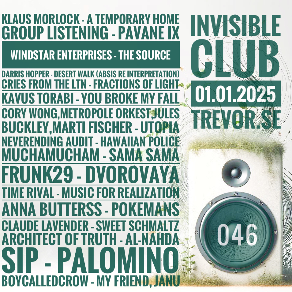 🌌 Welcome, seekers of hidden frequencies—your vessel has arrived at the edge of the cosmic fold. Step beyond perception and surrender to the spiral of auditory prophecies, bending time and space in their wake. 🔮 The sponsoring labels guiding today’s episode are: whitelabrecs, Mystery Circles, and, Castles In Space. 🚀 The sponsoring artists of today’s transmission: Philippe Deschamps, and, Time Rival. And distributor, Fonodroom, ensuring the echoes resonate far beyond the known horizon. Also the benevolent force that ensures chosen frequencies find their way home: ✨ Free Album Codes Today’s transmission leans deep into Seil Records with four artists from their enigmatic stable, plus two selections from label curator Jogging House Welcome to a soundscape that defies language—an auditory passage through the unseen. We are mere surfers atop an infinite wave. 🌞 Shoutouts to passengers: 🌿Fonodroom, Adventurous Music, hervé perez, and socool for your support. Links to all the material played are in the timeline where everyone is invited to leave a mark—comment your favorites, etch your presence into the mix. 🔹 Artists, experimenters, visionaries—send forth your sonic offerings: trevlad@gmail.com. 🔹 🔮 Prepare for immersion. Secure your headphones. Let time dissolve, and let the frequencies claim you. 🚀✨