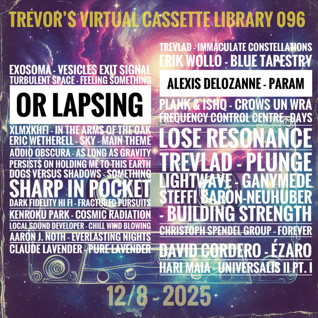 Welcome to Trevor’s Virtual Cassette Library episode 096 A 90-minute journey with a metaphysical flip at the halfway mark—perfect for a long walk, a mental wander, or a quiet moment alone with the universe. Today’s flight is sponsored by the labels that keep our circuits humming: Waxing Crescent Records, Buried Treasure, Downstream Records, Passed Recordings, whitelabrecs, Audionautic Records, Audion, DRONARIVM, and, Cyclical Dreams.